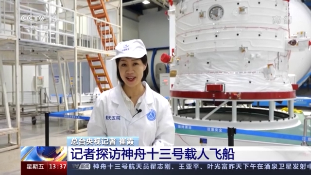 总台央视记者 崔霞:最上面的部分叫作轨道舱,它也是航天员的生活区,航天员在轨的支持设备,包括交会对接的一些测量的一些敏感器,都是要装在轨道舱里的。在飞船单独运行的时候,它也是航天员生活的地方。
