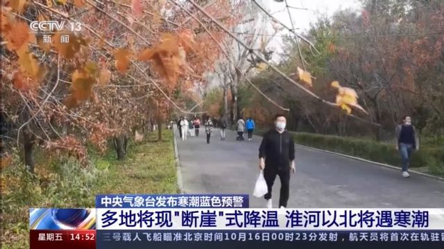 从昨天开始,新一股强冷空气影响我国,未来三天将自北向南带来大范围大风和剧烈降温,这也将是今年下半年以来最强的一次冷空气过程,中央气象台今天上午发布寒潮蓝色预警。气象专家提醒,此次强冷空气波及范围广,多地将出现“断崖”式降温,其中淮河以北地区将遇寒潮。