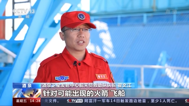 酒泉卫星发射中心航天员救助队队长 翟文江:我们救助队主要负责待发段航天员的安全撤离,针对可能出现的火箭、飞船发生推进剂泄漏、着火等各类突发状况,我们制定了全面系统的方案预案,在可控的情况下,我们将启用防爆电梯,如果情况危急,就要从逃逸滑道撤离至地下掩体。