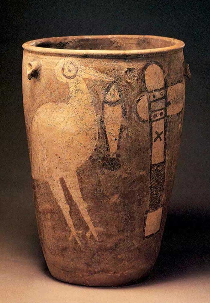 △“鹳鱼石斧图”陶缸(出土于河南临汝阎村遗址)