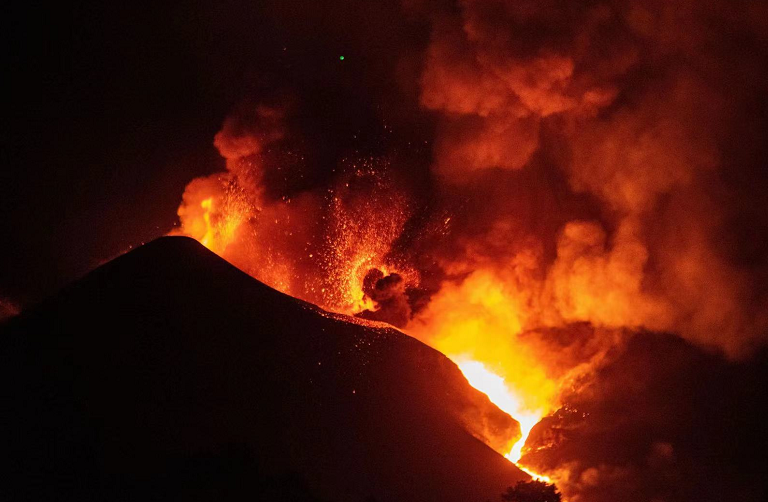 根据西班牙媒体当地时间10月15日晚间的消息,当地时间15日下午,西班牙拉帕尔马岛火山主椎体东南侧出现一个新的喷发口,目前正在喷发出气体、火山灰和火山碎屑。