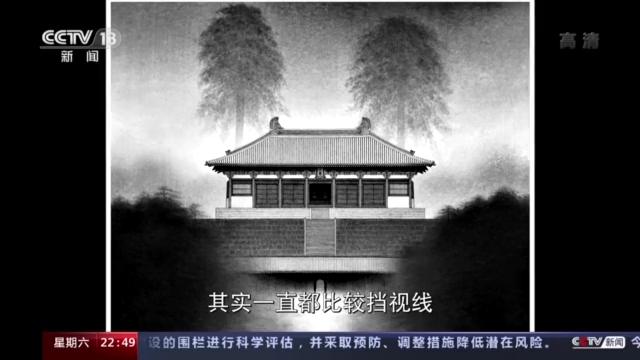 刘凯:这幅画就是叫作《真容》,它画的是我们忻州五台山的佛光寺的东大殿。中国目前只有三座唐代建筑保留,它是体量最大的一座,非常珍贵。我画的时候,是按照测绘图比例画的。斗拱的数量,还有檐角的弧度,还有这些瓦作,甚至于门板都非常接近于原物。东大殿前面的两棵松树,其实一直都比较挡视线,我画的时候就把它隐在身后,希望用我的画可以完全呈现出来那些古文当中的那种意境,那种场景,平静深邃。