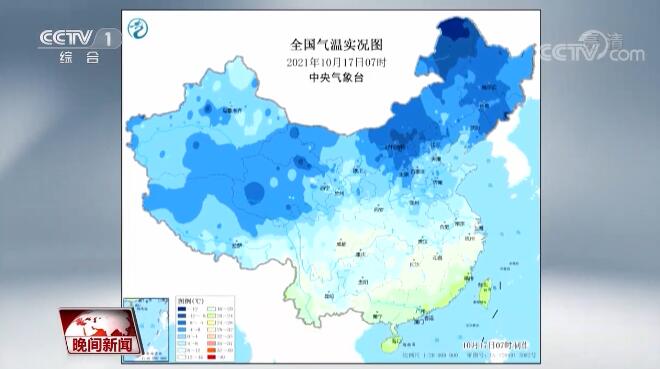 央视网消息:今年入秋以来的首股寒潮正在发威,多地遭遇降温降雪天气,10月17日,北方多地更是经历了近期最冷的清晨,华北中北部和东北多地最低气温都不足0℃,东北更是只有-5℃上下,内蒙古、北京、河北、上海等多地部分地区累计降温幅度超过了10℃。这是10月17日早上7时的全国气温实况图,北方多地已经被蓝色占领,太原、呼和浩特、长春等城市最低气温在冰点以下。