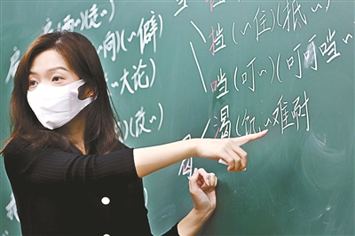 由瑄正在课堂上为同学们讲词组