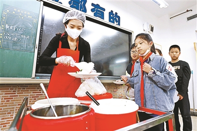 由瑄中午为同学们分饭
