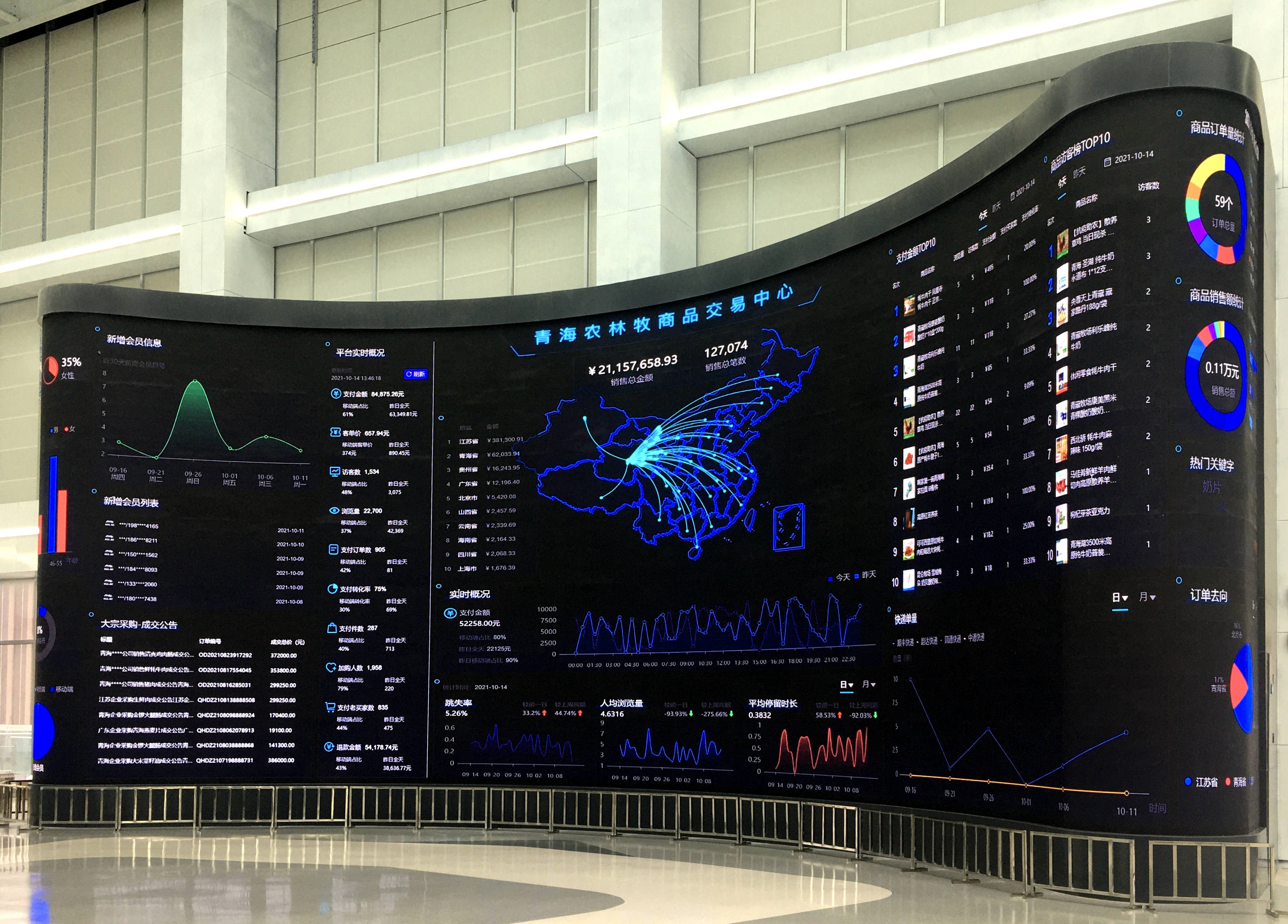记者看到,整个中心设有电子交易大厅、物联网监测中心、鉴真溯源防伪中心、超算中心、BI销售大数据曲面屏、特色展馆区及网红直播区等七大区域,可以满足商务办公、商品展销、技能培训等多种需求。