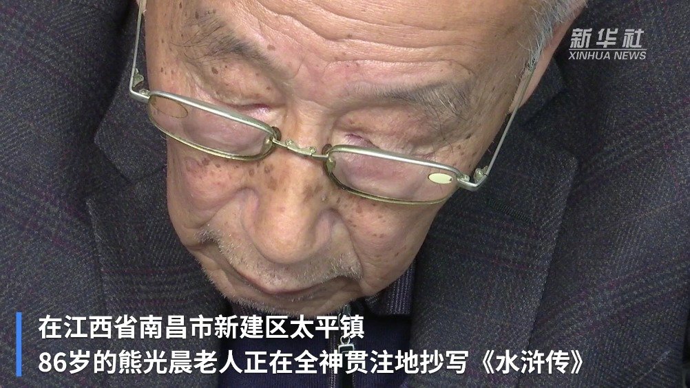 #86岁老人手抄四大名著#【南昌86岁老人抄300万字四大名著无一涂改】在江西省南昌市新建区太平镇,86岁的熊光晨老人坐在自家客厅书桌前,戴着老花镜,全神贯注地抄写《水浒传》。书桌上还整齐摆放着老人用8年时间抄写并手工装订的一整套四大名著。熊光晨老人说,他从小酷爱写字,有时间就会临摹名家书法,细心钻研。(记者彭菁) 新华社的微博视频