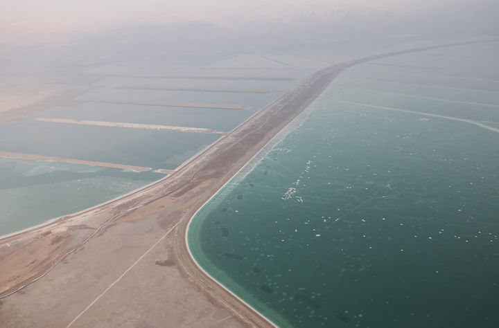 10月15日航拍的以色列马萨达国家公园附近的死海南部区域。(新华社发,吉尔·科恩·马根摄)