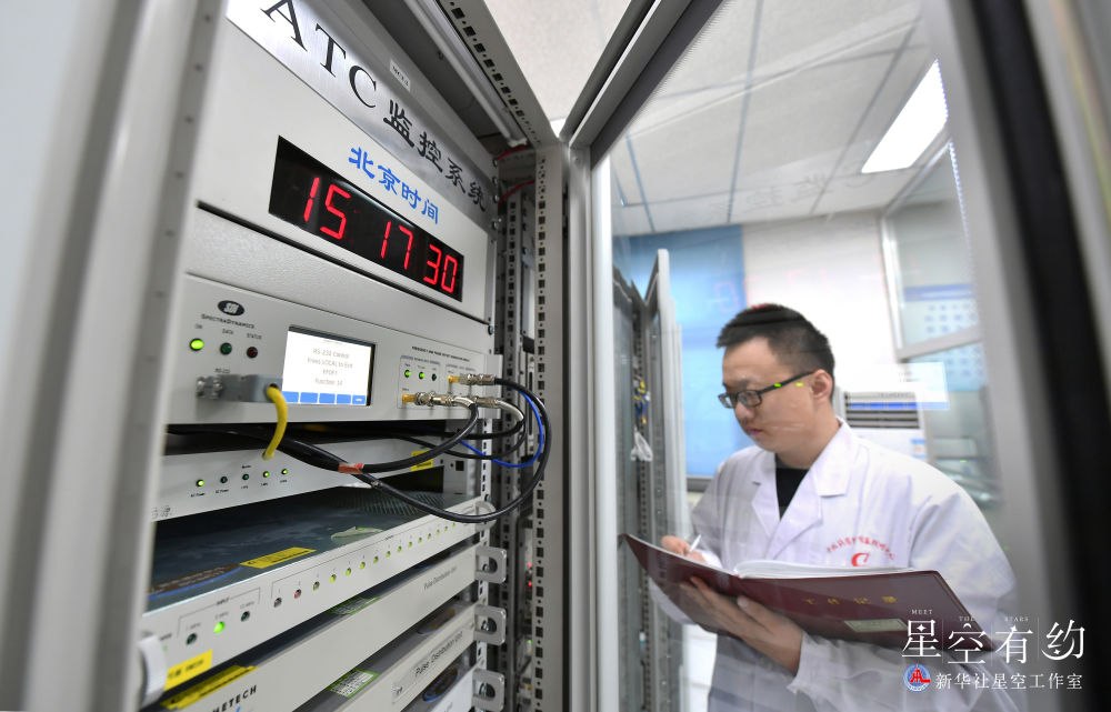 一位研究员在中科院国家授时中心守时实验室值守。新华社记者 刘潇 摄