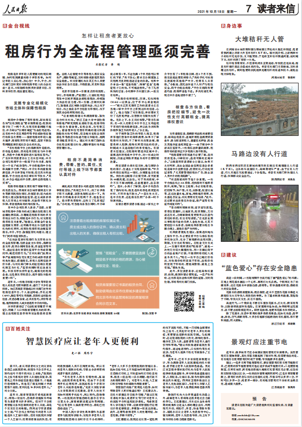 “应依法完善对租房行为及市场主体的全流程管理,包括企业主体资格、房源信息发布、租赁合同网签备案、资金监管等环节,通过信息化智慧化监管平台形成管理闭环,规范经营行为。”在相关部门长期从事产业规划和住宅发展工作的成都市读者杨先生建议,搭建房东、承租人信用信息评价体系,与相关部门牵头的征信联合奖惩机制互为补充,“监管的同时更应注重发展。积极有序扶持专业化、规模化的租房企业,这是激发市场活力、提升居住体验的重要一环”。