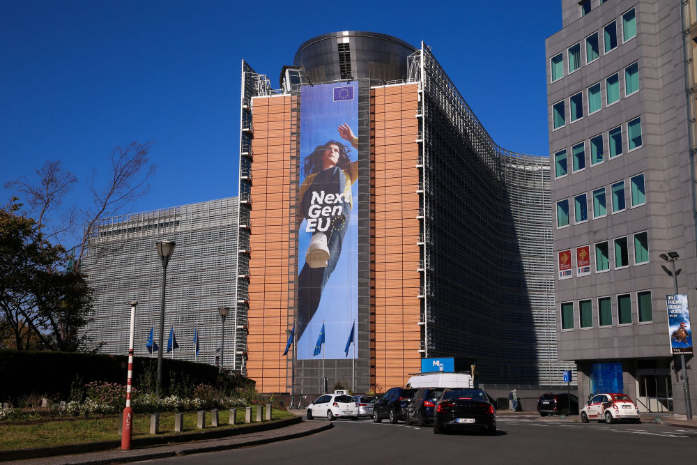 10月8日,车辆经过比利时布鲁塞尔的欧盟委员会总部大厦。(新华社记者郑焕松摄)