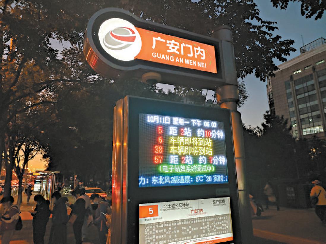 近日乘客等公交时发现,北京许多公交站的电子站牌亮起来了。