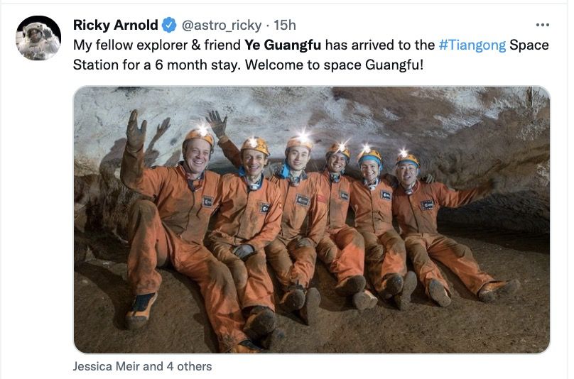 和莫雷尔一样,前美国航天局宇航员里基·阿诺尔德也与叶光富有过合作。2016年,两人曾在意大利撒丁岛参加欧洲航天员中心组织的洞穴训练。
