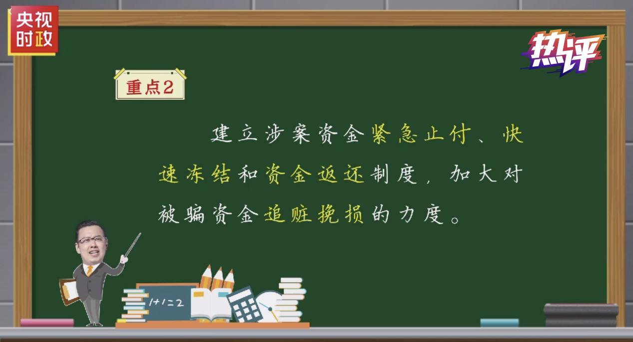 最大限度减少人民群众的财产损失。百姓的每一分钱都是辛苦钱,执法机关采取措施最大限度减少他们的损失,需要立法上的制度支撑。草案建立涉案资金紧急止付、快速冻结和资金返还制度,加大对被骗资金的追赃挽损的力度,被害人报案后公安机关可以通知银行紧急停止支付。