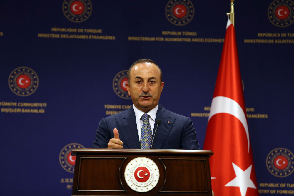 7月6日,在土耳其安卡拉,土耳其外交部长恰武什奥卢出席新闻发布会。(新华社发)