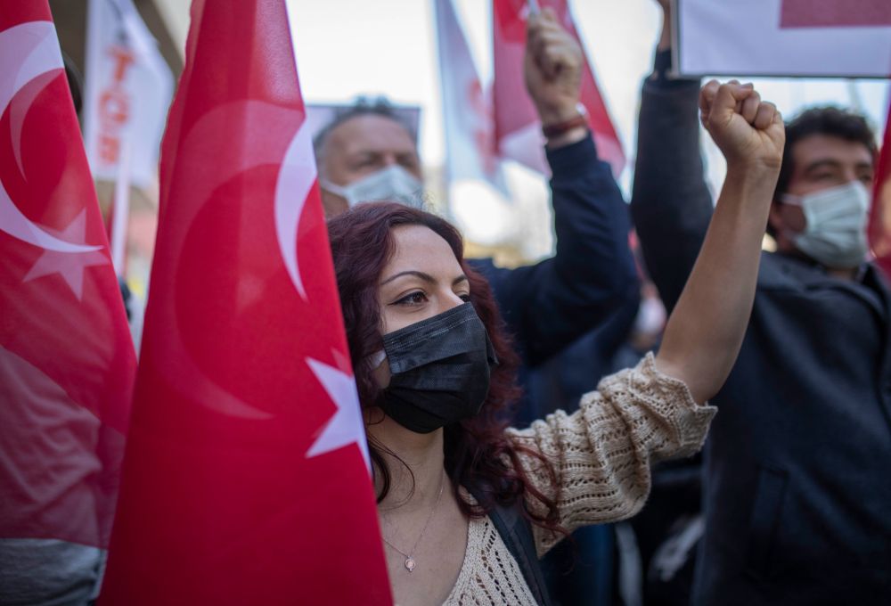 4月26日,土耳其民众在伊斯坦布尔集会,抗议美国总统拜登把百余年前奥斯曼帝国境内大批亚美尼亚人遭杀害称为“种族灭绝”。(新华社发,奥斯曼·厄尔萨尔摄)