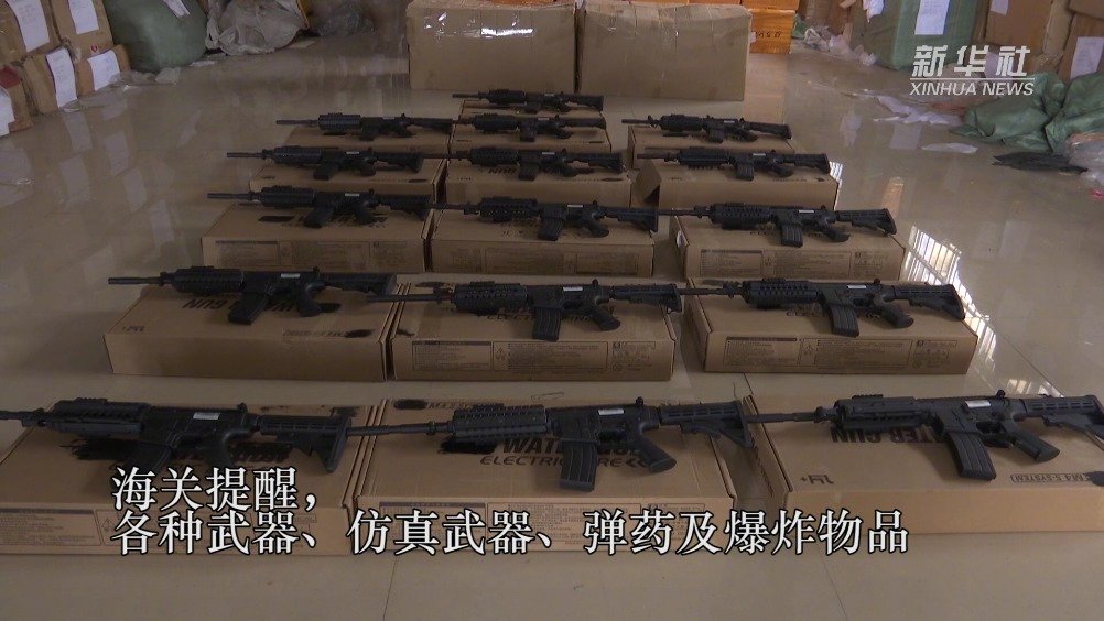 【#南宁海关查获16把仿真M416#】近日,南宁海关所属爱店海关在对辖区某公司申报出口的纺织品货物进行查验时,发现该票货物中夹藏有16把长枪形物。经鉴定,这16把长枪形物均为仿真枪。目前,该案已由缉私部门立案办理。海关提醒,各种武器、仿真武器、弹药及爆炸物品均属于禁止进出境的物品。(记者黄耀滕,素材来源:南宁海关) 新华社的微博视频