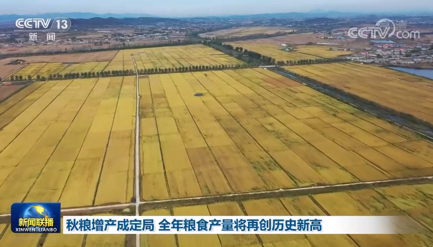 央视网消息(新闻联播):在国务院新闻办公室今天举行的新闻发布会上,农业农村部有关负责人介绍说,今年,我国全年粮食产量将再创历史新高。
