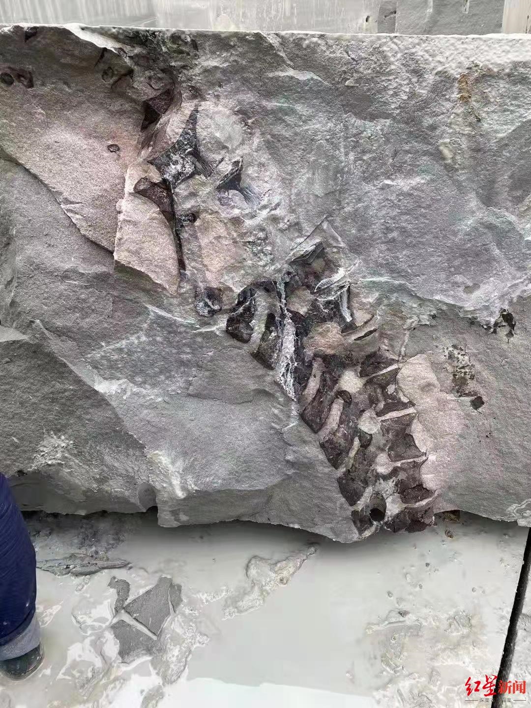 10月18日下午,四川省隆昌市一处在建工地发现疑似古生物化石,引发广泛关注。业内专家通过查看照片初步判断系恐龙脊椎骨骼化石,但确切信息仍需要进一步考察发掘(红星新闻此前报道:四川隆昌一工地挖出疑似古生物化石,专家称初步判断为蜥脚类恐龙尾椎骨)。