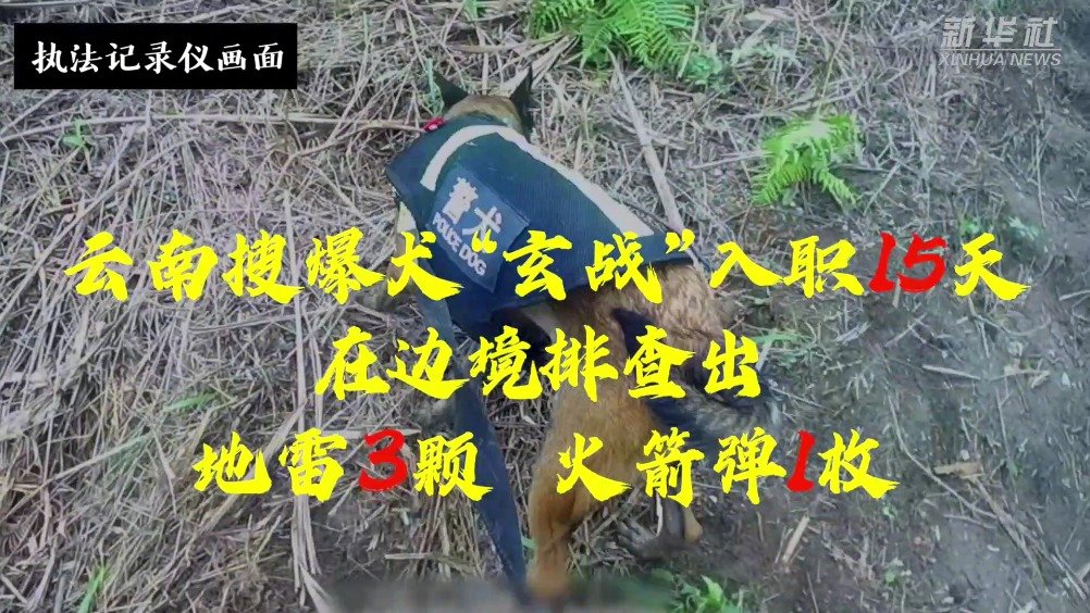【#云南搜爆犬入职15天扫4雷#】搜爆犬突然趴下,转头看向训导员,表明此处有爆炸物……近日,入职仅15天的云南文山边境管理支队搜爆犬“玄战”在与民警执行边境巡逻任务时搜出地雷3颗、火箭弹1枚,为维护边境地区安宁发挥了重要作用。#这只业务素质过硬的警犬你爱了吗#?(记者王研、周磊) 新华社的微博视频