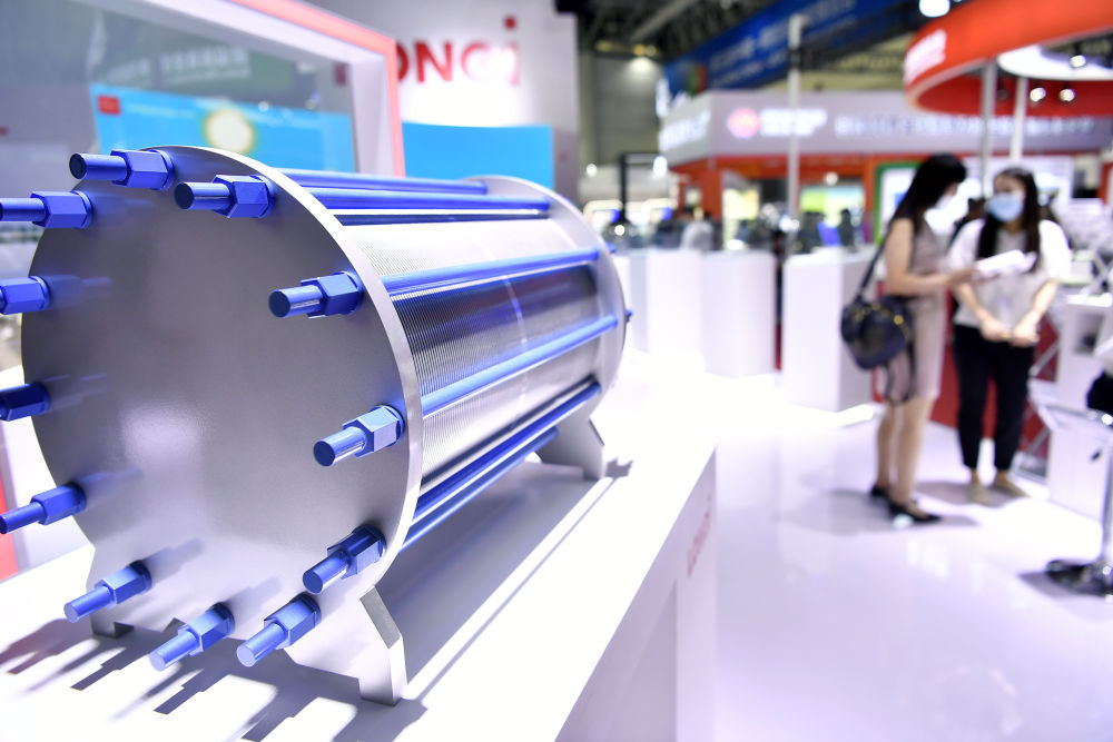 8月22日,参观者在中国-阿拉伯国家博览会清洁能源与新型材料展区了解光伏设备。(新华社记者王鹏摄)