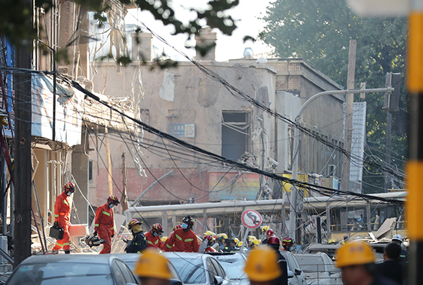 澎湃新闻此前报道,记者在事故发生现场看到,现场处置工作仍在进行中,道路清障车等作业车辆穿梭不停,燃气公司人员深夜仍在附近小区检修排查。事故致不少楼栋居民家窗户破损,低气温下,不少人在政府安排的宾馆暂住。