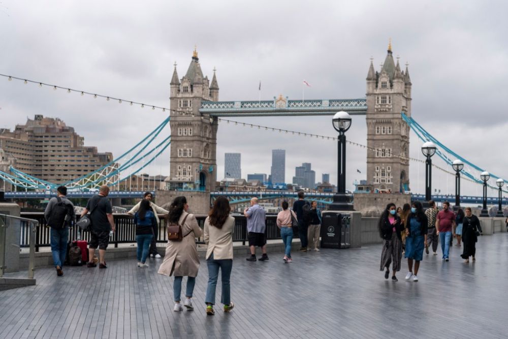 8月30日,人们在英国伦敦的泰晤士河畔行走。(新华社发,雷伊·唐摄)