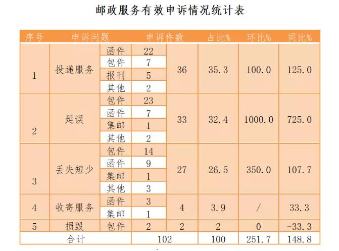 邮政服务申诉问题情况