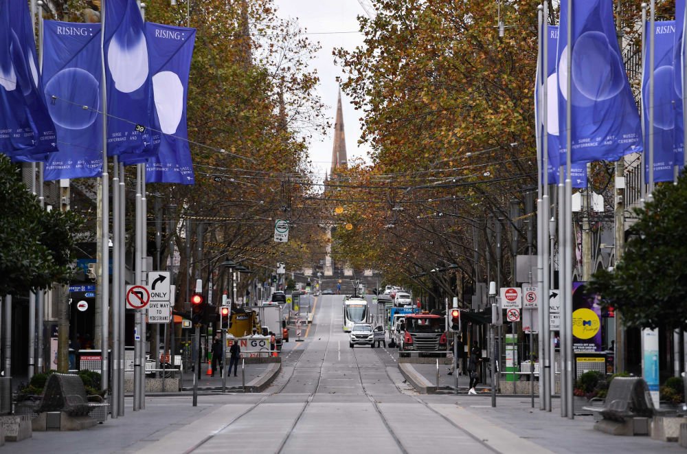 这是5月28日拍摄的澳大利亚墨尔本空旷的街道。(新华社发,白雪摄)