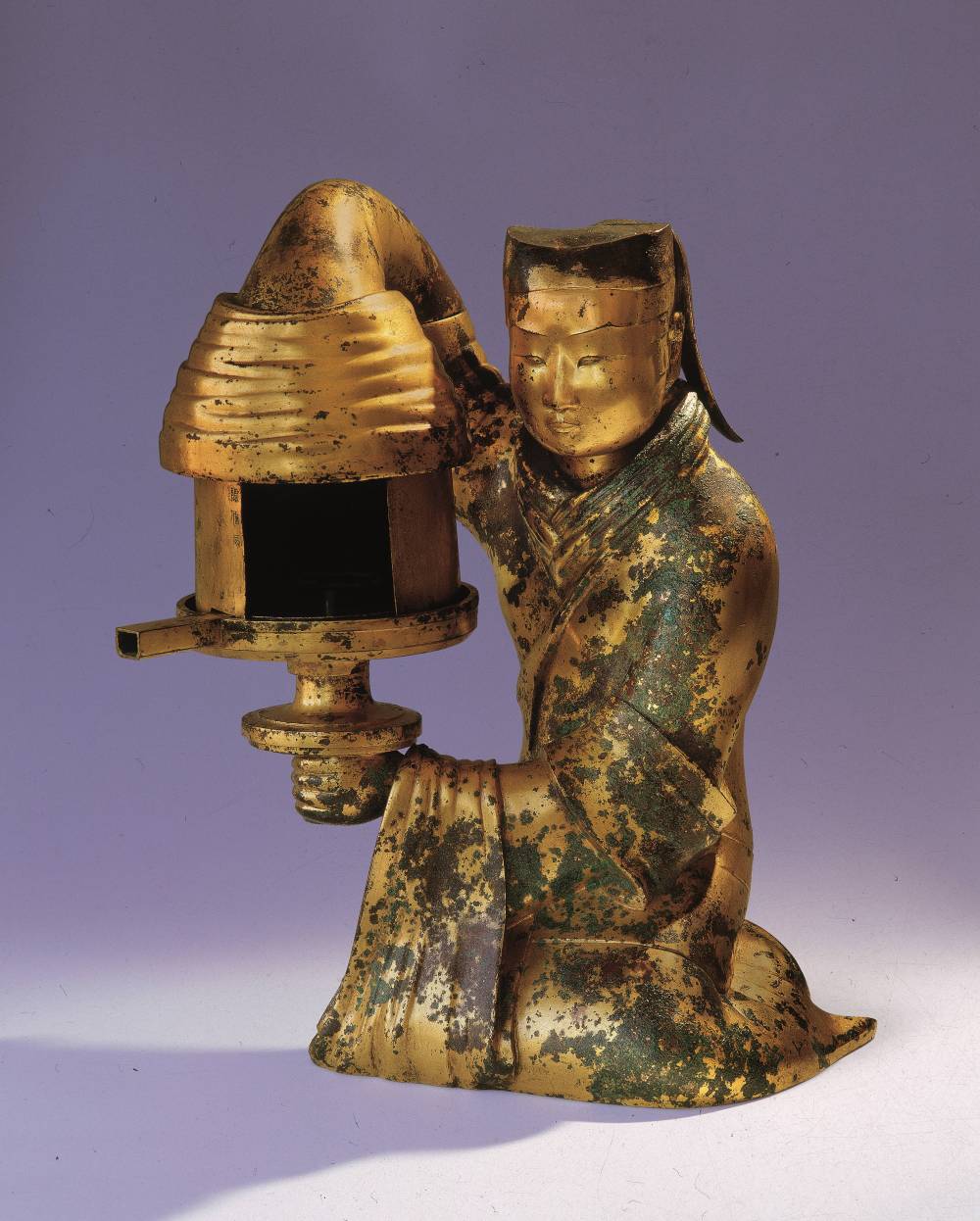 长信宫灯构造设计合理,整件灯由头部、身躯、右臂、灯座、灯盘、灯罩等六部分分铸而成,每部分都可拆卸,清扫积攒在内部的烟灰时也极为方便。历经2000多年,灯身外表虽留下斑斑锈迹,但仍体现出汉代鎏金工艺的高超水平。