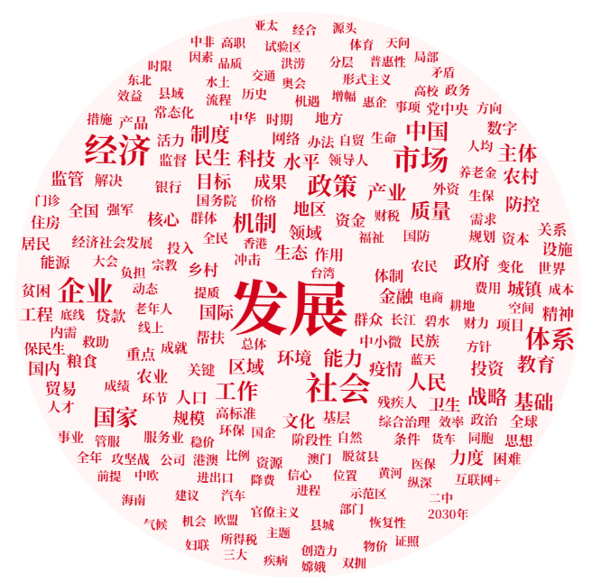 2021年《政府工作报告》词云。(图片来源:新华社技术局闻新数智工作室)