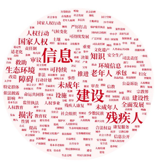 《国家人权行动计划(2021-2025年)》词云。(图片来源:新华社技术局闻新数智工作室)