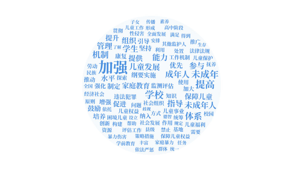 《中国儿童发展纲要(2021-2030年)》词云。(图片来源:新华社技术局闻新数智工作室)