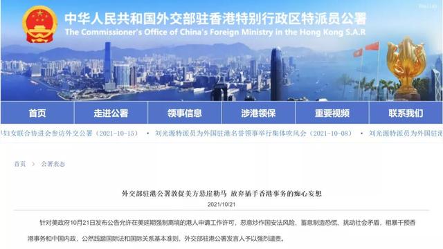 △外交部驻港公署敦促美方悬崖勒马 放弃插手香港事务的痴心妄想