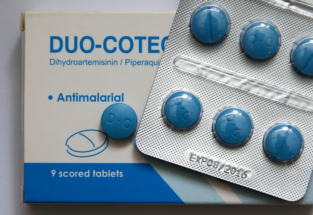 ↑ 这是2015年10月6日在肯尼亚内罗毕拍摄的由中国企业生产、含有青蒿素成分的抗疟药物。新华社记者潘思危摄