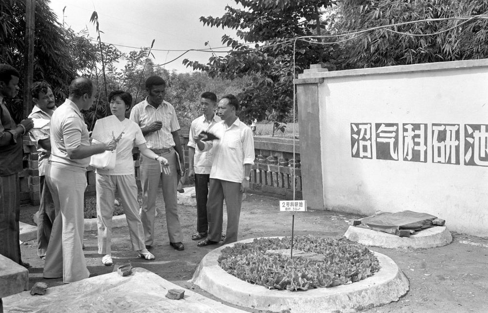 ↑ 1979年7月至8月,联合国环境规划署和中国国务院环境保护办公室在中国成都等地举办了为期近一月的沼气建设讲习班。参加讲习班的亚、非和拉丁美洲的18个国家的学员参观四川绵阳市农村的一个沼气池。新华社记者金勖琪摄