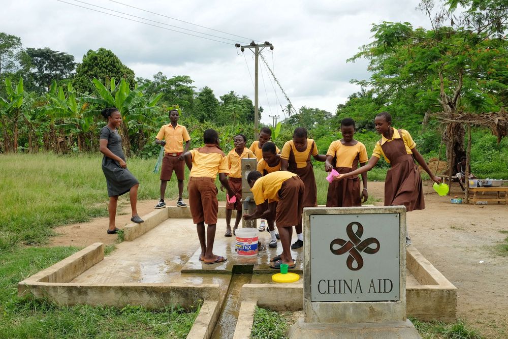 ↑ 2018年6月18日,在加纳东部省古阿由兹村,学生从中国援建的水井打水。新华社记者赵姝婷摄