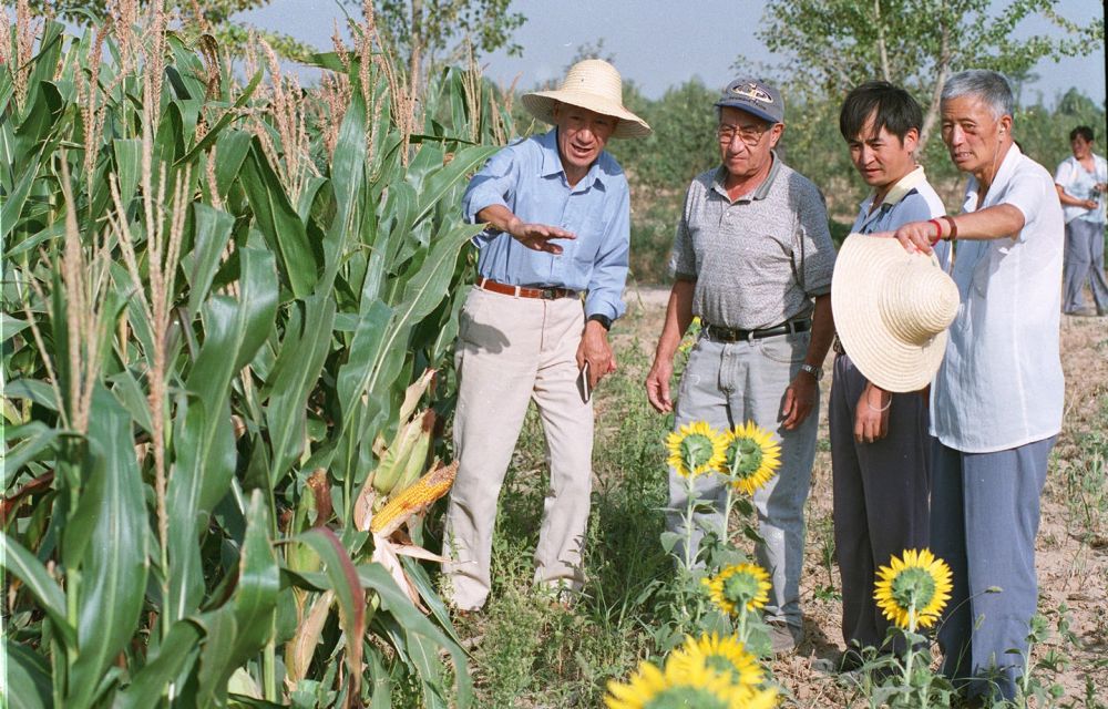 ↑ 1997年10月,联合国开发计划署援华技术顾问考察援建的中国陕西省渭南市合阳县甘井旱地农业开发项目示范区。新华社记者范德元摄