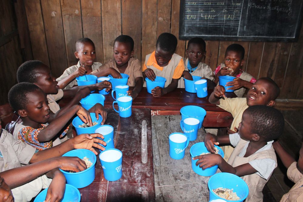 ↑ 2019年10月17日,在贝宁经济首都科托努郊区的托优优美小学,学生们在午餐时享用中国援助的米饭。从2018年开始参与中国、贝宁和世界粮食计划署联合实施的贝宁中小学生“全国学校食堂计划”后,该校的学生们每天都能吃上一顿中国援助的大米饭。 新华社发(塞拉芬摄)