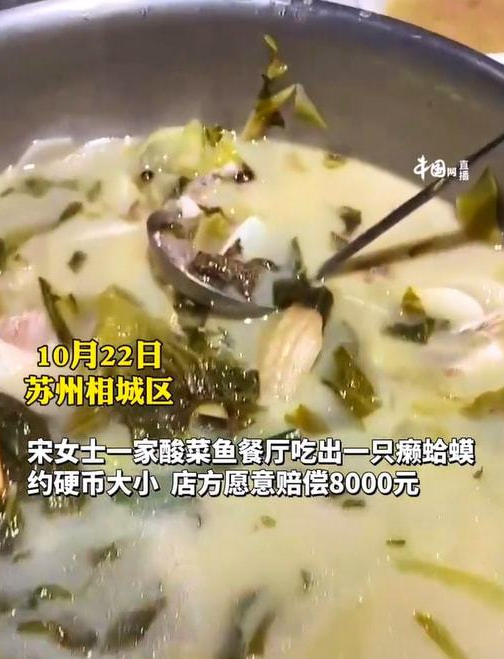 ·苏州一女子吃酸菜鱼吃出癞蛤蟆,店方:可能被鱼吞食。