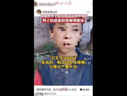·男子为博眼球发布不实视频,抹脏小朋友的脸卖惨,故意在破旧房屋前摆拍,被依法传唤。