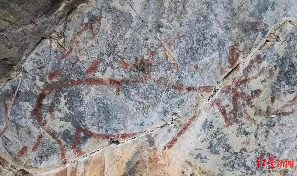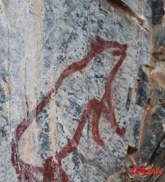 10月22日,红星新闻记者从四川甘孜州海子山自然保护区管委会获悉,近日巡护人员在巡山过程中发现隐藏在断崖石壁间的彩绘岩画,岩画呈暗红色,表现内容多样,包括舞蹈、狩猎图腾等。