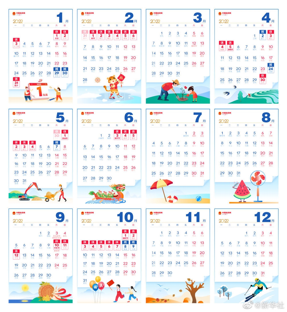 二、春节:1月31日至2月6日放假调休,共7天。1月29日(星期六)、1月30日(星期日)上班。