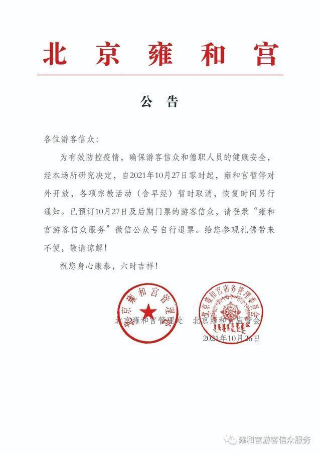 为有效防控疫情,北京雍和宫明天起暂停开放