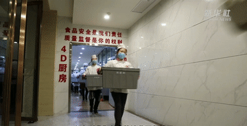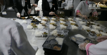 △10月25日,在兰州市城关区一家餐饮企业,工作人员将制作好的隔离人员餐食放进保温箱。