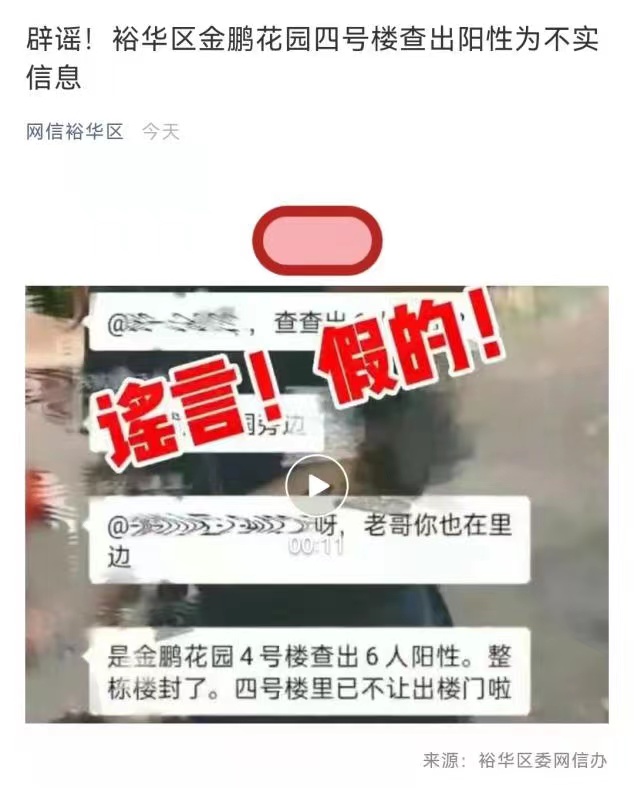 网传“裕华区金鹏花园四号楼查出阳性”?官方连夜辟谣!