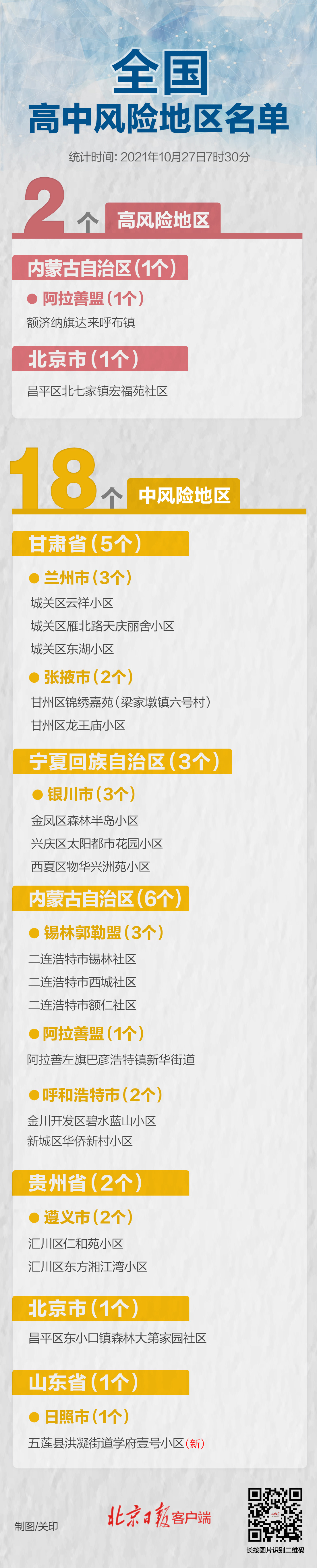 根据国务院联防联控有关规定,结合疫情防控处置情况,经综合研判,日照市委统筹疫情防控和经济运行工作领导小组(指挥部)决定,自2021年10月27日零时起,将五莲县洪凝街道学府壹号小区定为中风险地区。