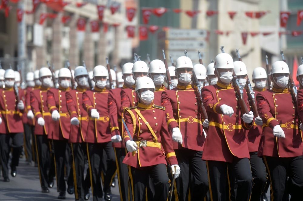 8月30日,在土耳其安卡拉,土耳其军人参加“胜利日”庆祝活动。(新华社发,穆斯塔法·卡亚摄)
