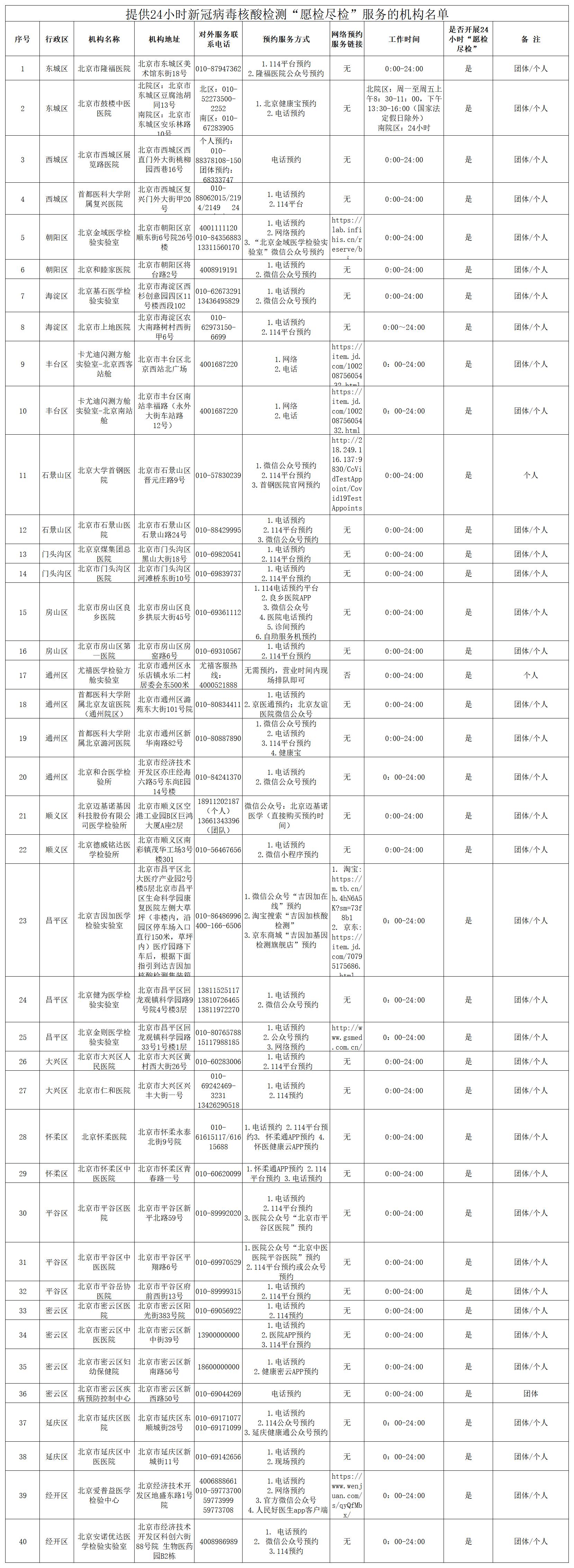 据首都之窗微信公众号消息,为方便市民查询和就近选择检测采样服务,北京市卫生健康委员会对全市提供新冠病毒核酸检测采样服务的采样点和提供24小时“愿检尽检”核酸检测服务的检测机构信息进行了汇总。截至2021年10月26日,全市共312个核酸采样点,40家核酸检测机构可提供24小时“愿检尽检”服务。