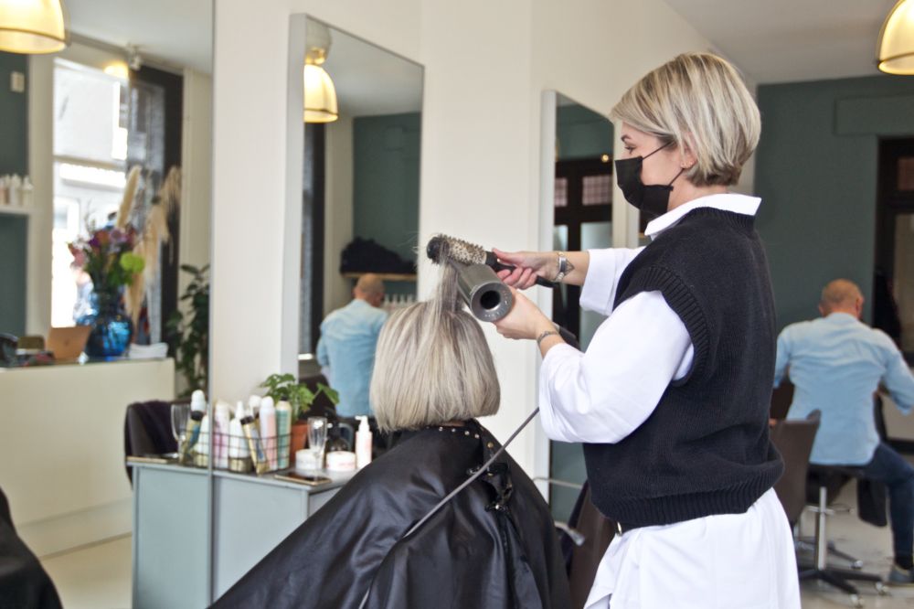 3月3日,荷兰哈勒姆一家重新开放的理发店的工作人员为顾客服务。(新华社发 西尔维娅·莱德雷尔摄)